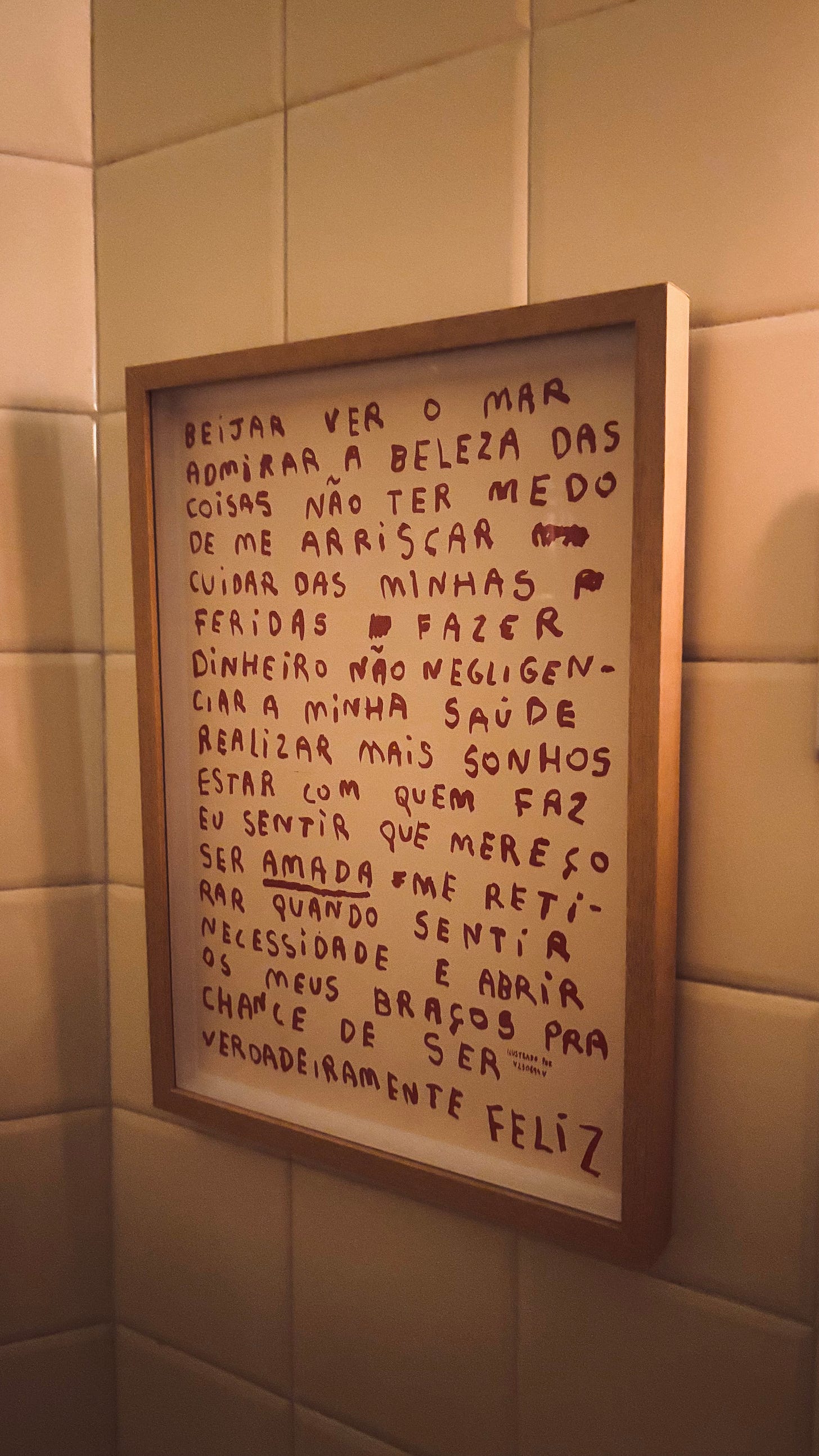 Em um tempo desses, também comprei um pôster. Uma espécie de arte-lembrete-poesia-oração. Coloquei exposto no meu banheiro, para não só eu, mas também todos que por ali passarem serem convidados a olhar para o seu desejo de ser verdadeiramente feliz e, assim, abrirem os braços para isso.